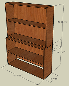 しかし部屋の整理をしてヤバかったのが、本。買ったのに読んでない本や読み終えたけど必要な本が山のように(というほどでもないが)あります。とうに読み終えて不要になった本はだいぶ捨てたんですが、それでもまだ結構あります。そこでデッドスペースを隙間無く埋める最適な本棚をDIY(自作)しようと思い立ち、Google SketchUpで設計してみました(図1)。