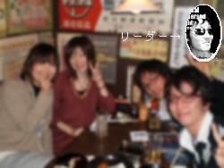 我らがリーダー主催。メンバは作曲研究会={リーダー,シノラー,僕}に加え、何とサプライズでりーな様(*1)とn登さん(*2)。会場はパルコ近くの半兵ヱっていう昭和レトロ風味のお店。安いし旨いしメニュー豊富で面白い。初めてカエル肉を食べました。鶏と魚の中間みたいな味わい。なるほど両生類だからか、と納得。意外に全然クセが無くイケるよ。また行こうと思います。超おススメ。不思議なメンバにもかかわらず会話も盛り上がり、サイコーでした!! リーダーありがとう!!!