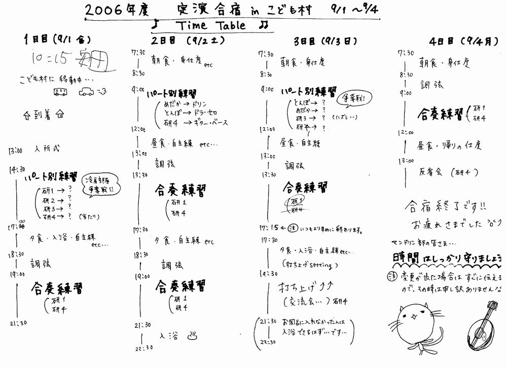 図1. 2006年度 定演合宿 in こども村 Time Table (y廣作)