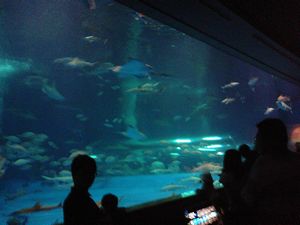 カラフルな魚群が織りなす幻想的光景。しかしサカナって正面から見ると怖いわ。遠くから見るとなかなかスタイリッシュだが。生のクラゲやイカも初めてでは無いにしろ見ようと思わなければなかなか見られないもので、貴重な体験だ。