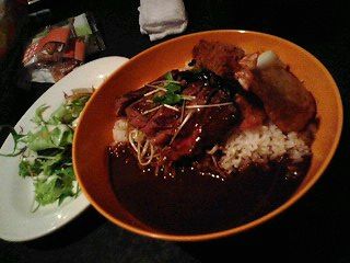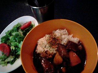 で、この日のカリーは何とステーキカリー(図1)。m場さんの誕生日に便乗する形でボクのまかないまで豪華に! まぁ素敵。