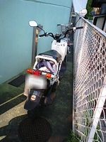 非常勤バイトが終わり学校へ戻る途中、ちょうど市内→畑峠までの間にヨコガワさんの勤務先(己斐上)があるので寄ってみました。すると図1のような原チャリが。