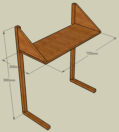 まぁそんなわけで買える材料が限られてしまい、大幅に仕様変更せざるを得ませんでした。で、前日に引き続いて図1のようなベッド脇設置用小本棚をGSU(Google SketchUp)で設計してたんですが、材料との兼ね合いで図2のような結果になりました。