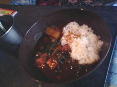 今日のカリーは牛すじ肉と茄子、ほうれん草のカリーでございました(図1)。さすがに3日連続カリーは少し飽きが来ます。1日空けないと欲求が復活しません。