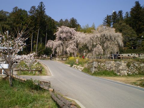 話は変わるが本日(実際には昨日だが)、ボクも神原のシダレザクラを見に行って参りました。一人でですよ。去年と変わらぬ美しさで咲き誇っておりました(図1)。